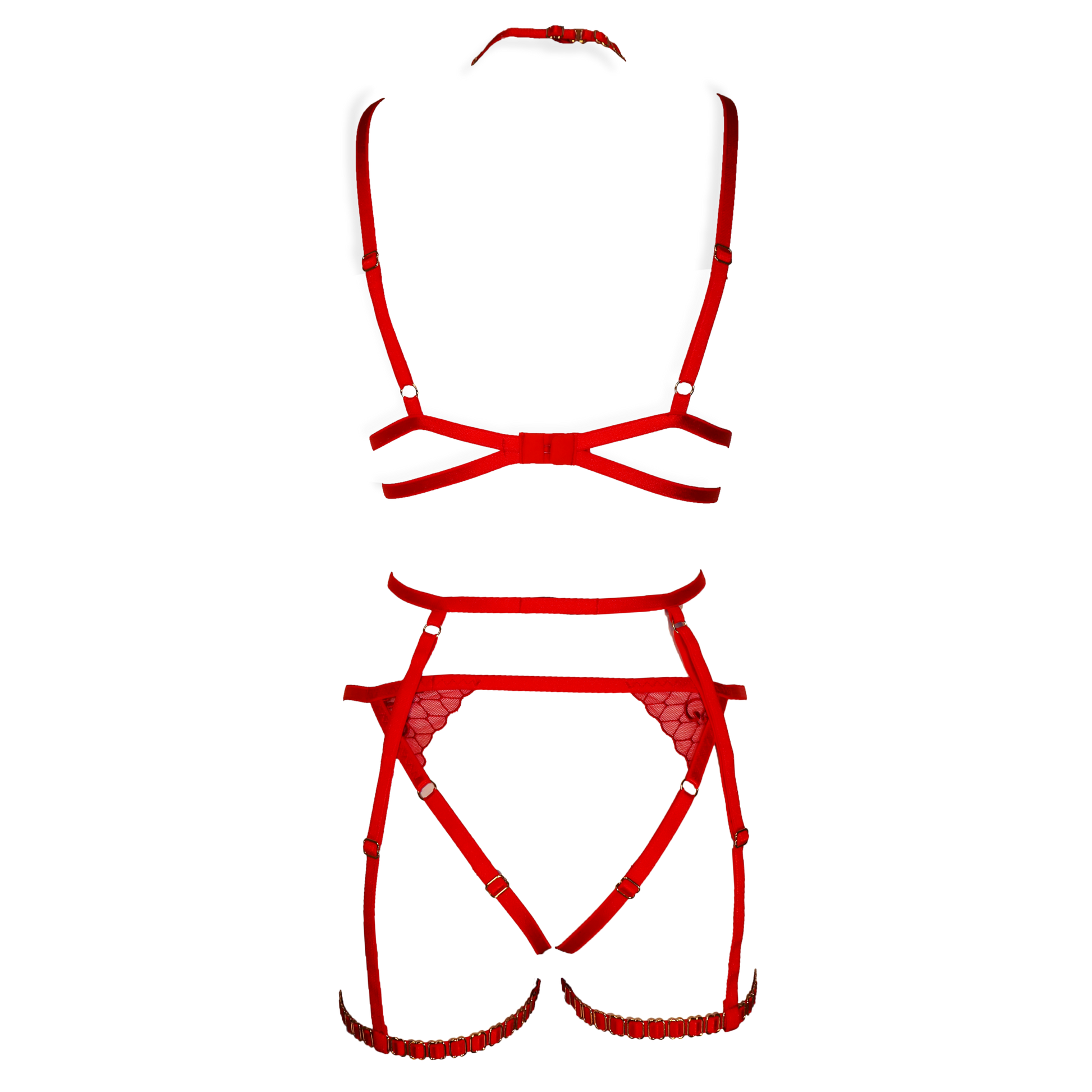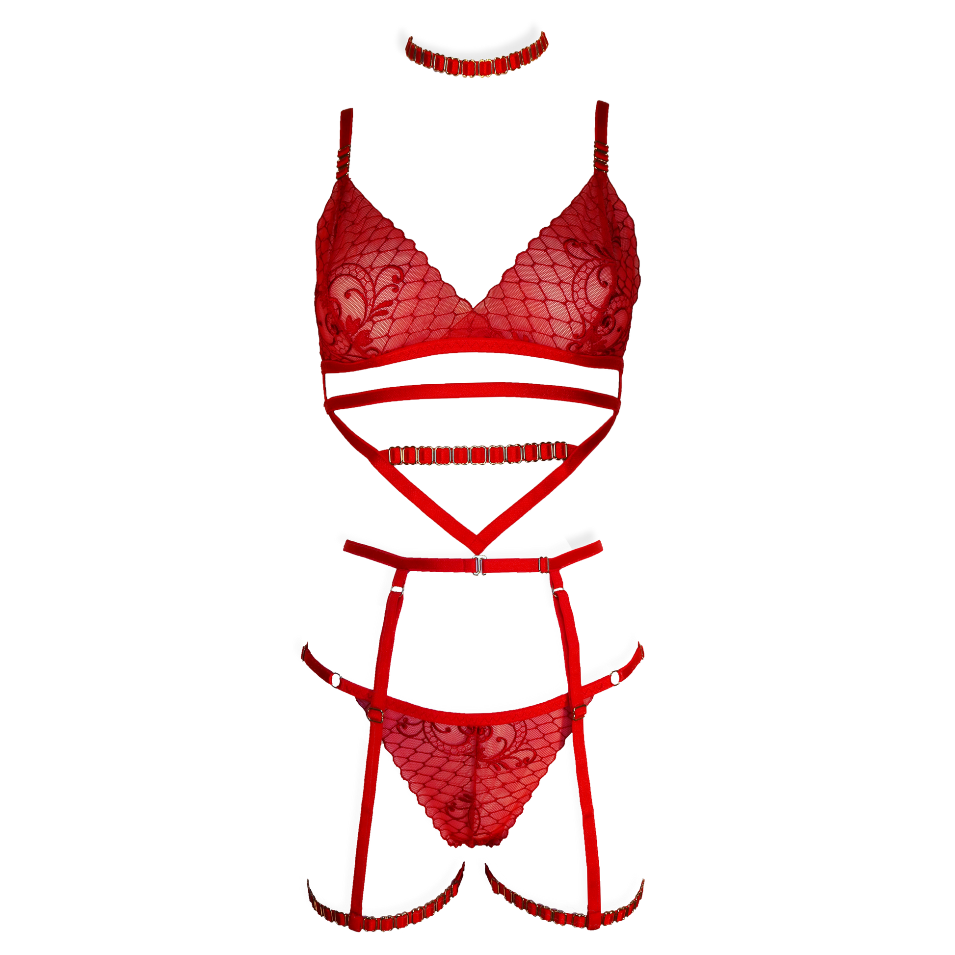 Josette handmade lace lingerie set with garters and crotchless panties (choker not included; you can add it to cart from accessories section)