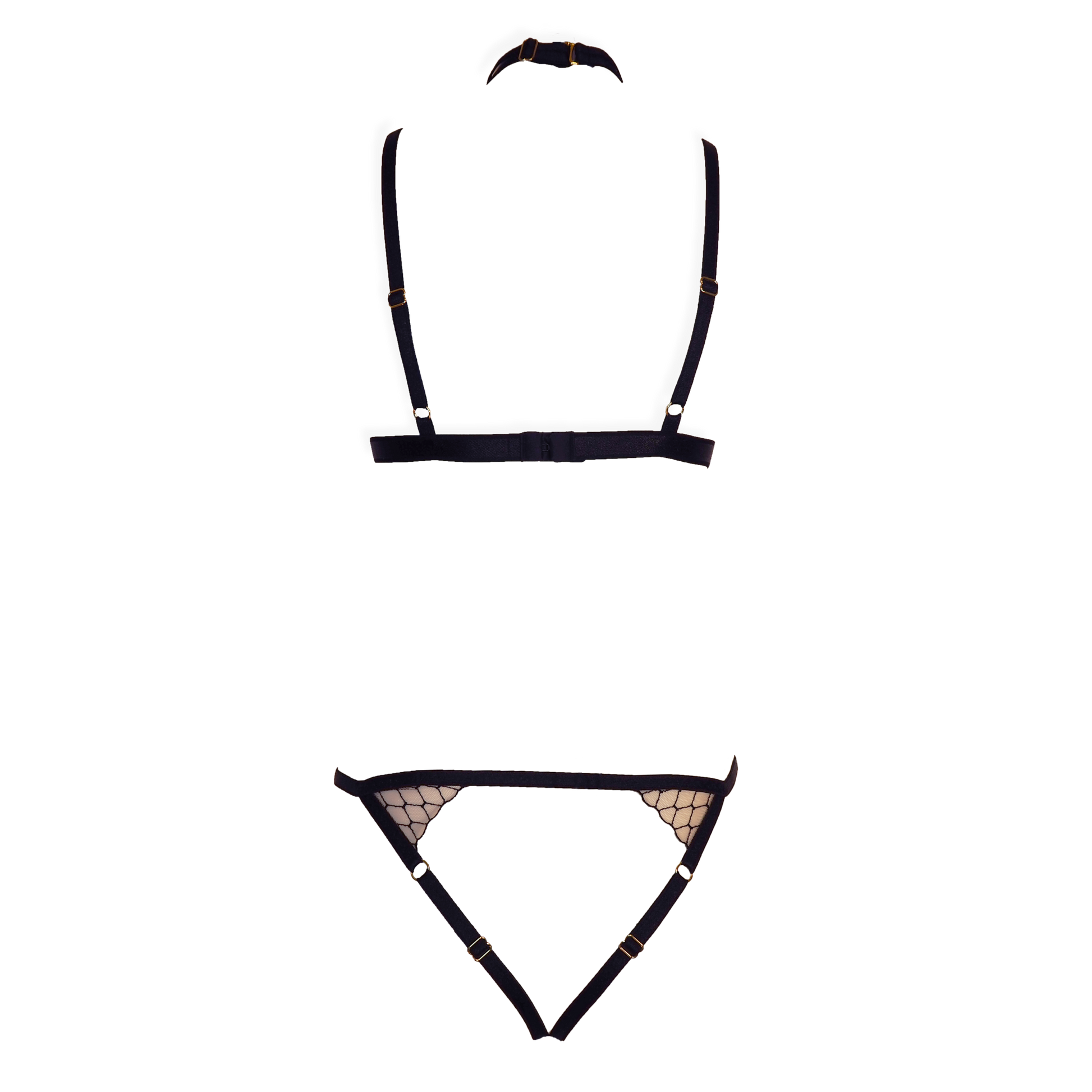 Michelle handmade lace lingerie set with crotchless panties and detachable choker