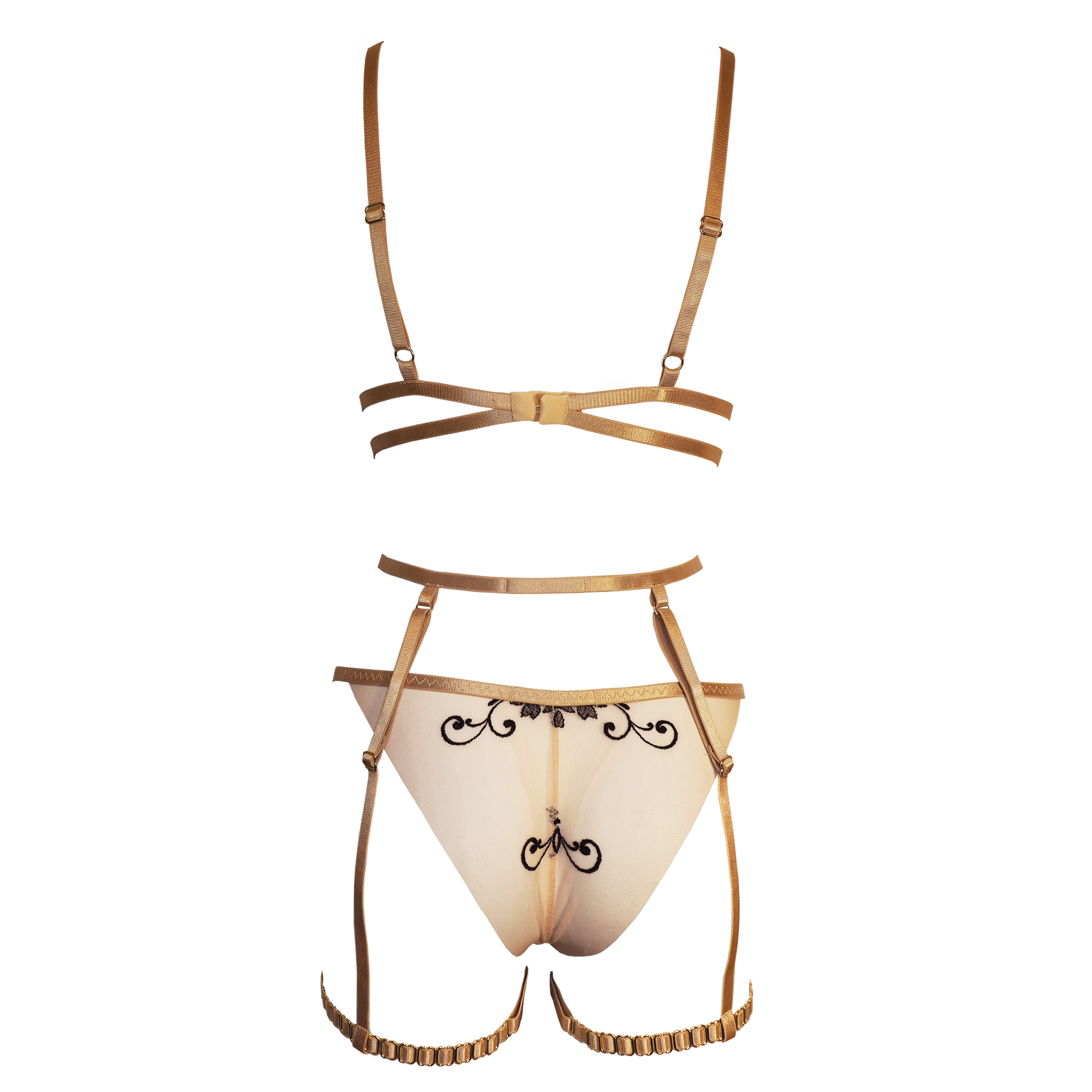 Nudee handmade transparent tulle lingerie set with garters (choker not included; you can add it to cart from accessories section)