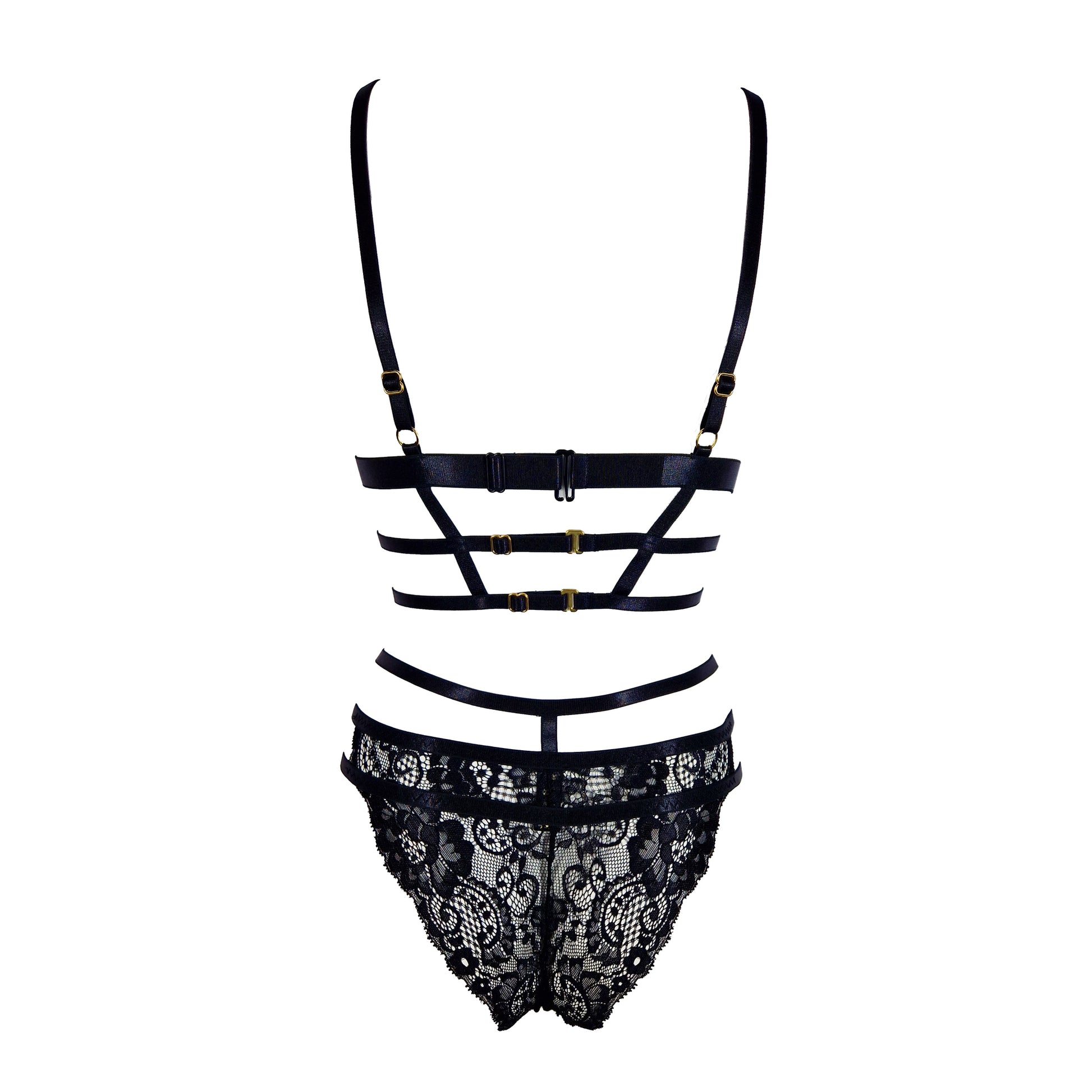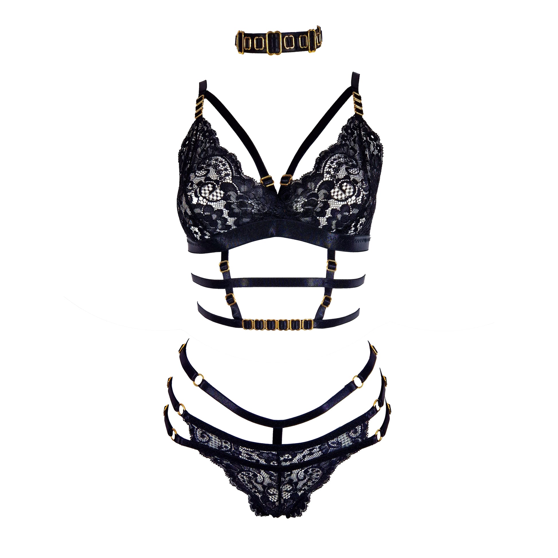 Handmade lingerie set in black with golden details (choker not included; you can add it to cart from Accessories section)